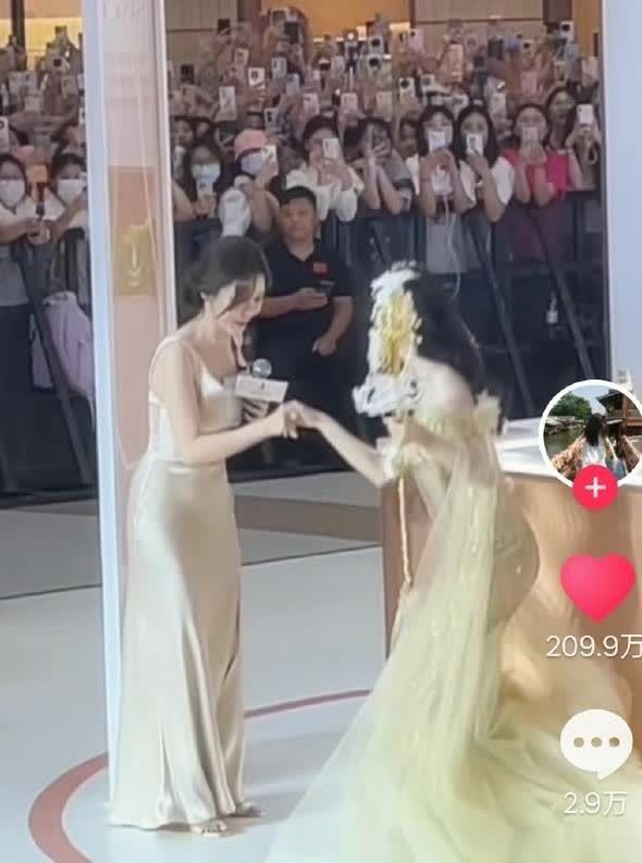 再看她主动扶起主持人并回握对方的手。这一连贯动作,传递出的不仅是礼貌,更是一种无声的关怀。她没有让主持人陷入尴尬,而是用肢体语言传递出“你没事吧?别在意”的信号。这就像在拥挤的地铁里,有人不小心踩到你,你却笑着安抚对方“没事”——教养不是大声说出来的,而是通过行动让人感受到的温暖。